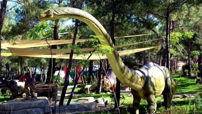 Динопарк расположен на главной дороге между Анталией и Кемером, в 40 км от центра Анталии, а площадь парка составляет 30 акров.